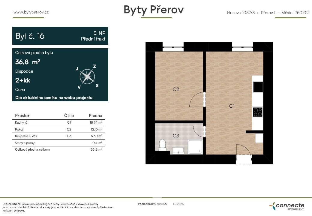 Dispozice: 2+kk, 36,8 m2